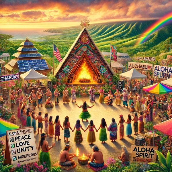 The ALOHABURN regional gathering is more than an event—it is a living blueprint for a future where communities thrive in harmony with one another and the land. Our vision is to build Universal Regenerative Neighborhoods that embody the culture of Aloha, grounded in Peace, Love, Unity, and Sovereignty.